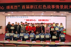 为认真贯彻落实《新时代爱国主义教育实施纲要》“继承革命传统,弘扬革命精神,传承红色基因”重要指示精神,让红色基因永不变色、代代相传。11月26日18点整,由浙江省博物馆、我校马克思主义学院和校思研会共同举办2019年“技能文化月”系列活动之“铭初心 颂英烈”首届浙江红色故事情景剧大赛,历时一个半小时在行政楼三楼报告厅圆满结束。出席本次活动的嘉宾和评委老师有:党委委员、纪委书记朱利萍、党委委员、组织部长、宣传部长陈专、绩效改进研究所所长兼工商管理学院副院长张秋埜、网络学院(物产中大管理学院综合服务中心)院长李弟财、马克思主义学院院长梁丽华、马克思主义学院书记郑芝玲、商贸流通学院副院长汪永华、组织部副部长张芦军、校团委书记周美华、政理教研室主任赵效萍、心理健康教研室主任王蓓、马庆老师。